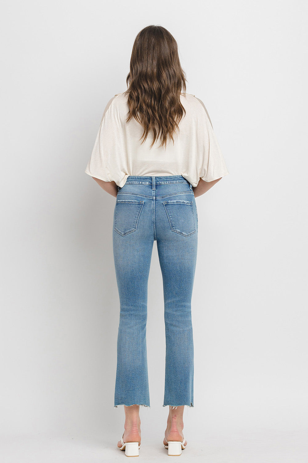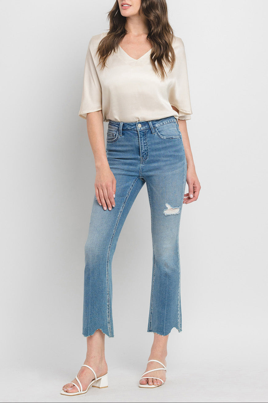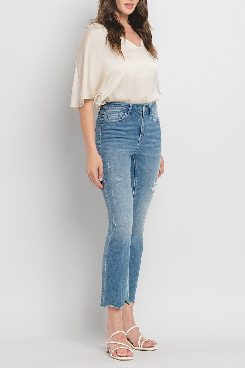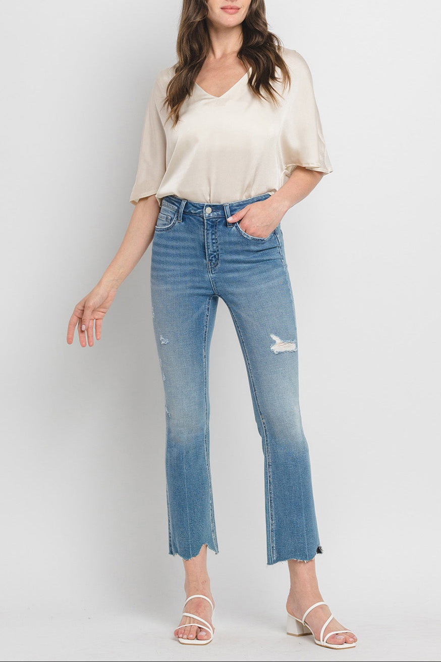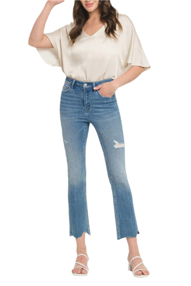 Flying Monkey - High Rise Kick Flare Jeans with Uneven Distressed Hem (27" Inseam) - F5120