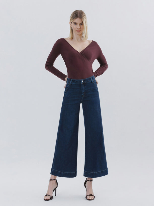 Flying Monkey Jeans - High Rise Ankle Wide Leg Jeans in Deep Indigo (28" Inseam) - F5923
