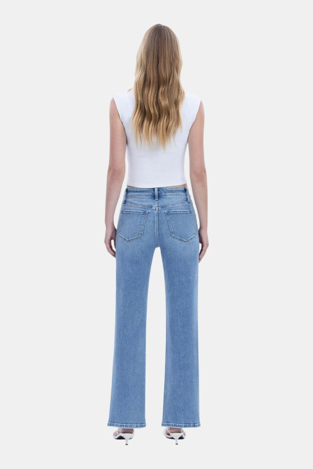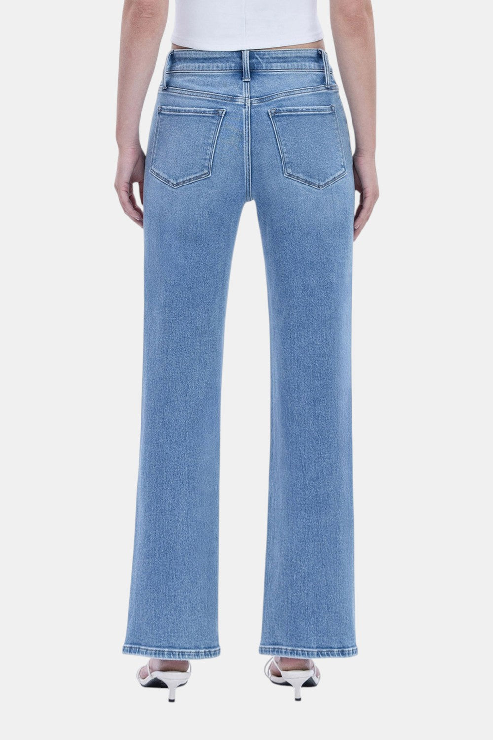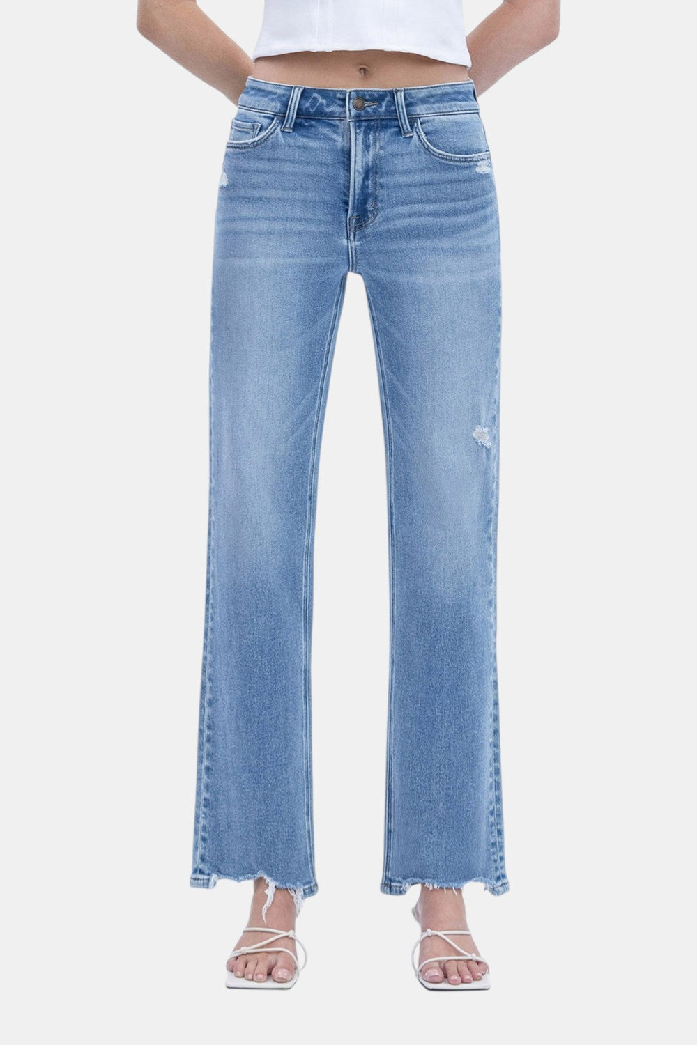 Description: Elevate your denim rotation with these Vervet slim wide jeans. Featuring a glowing medium light wash and a trendy distressed hem, they offer a sophisticated yet relaxed silhouette that elongates the legs for a clean, modern look.