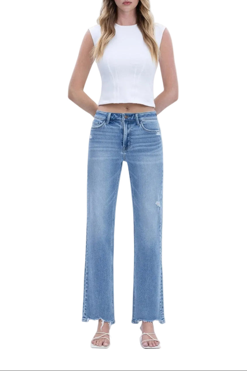 Vervet - High Rise Distressed Hem Slim Wide Jeans (30" Inseam) - LV1998