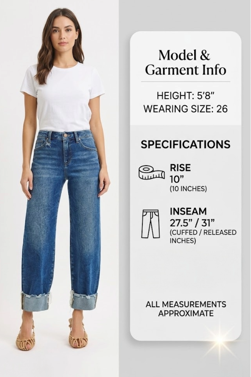 Specs: Rise: 10" | Inseam: 27.5" (Cuffed) / 31" (Released)