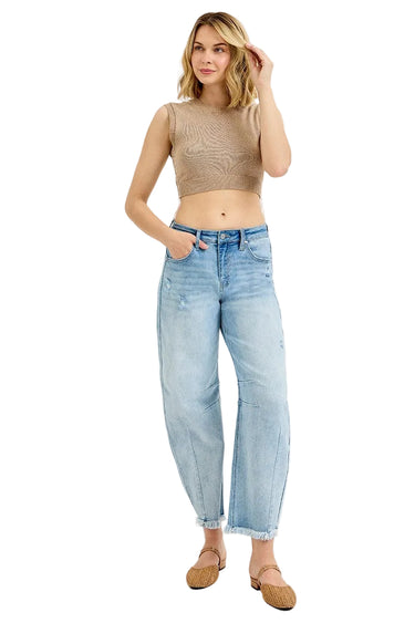Risen Jeans - High Rise Slouchy Crop Barrel Distressed Jeans (27" Inseam) - PGC21183