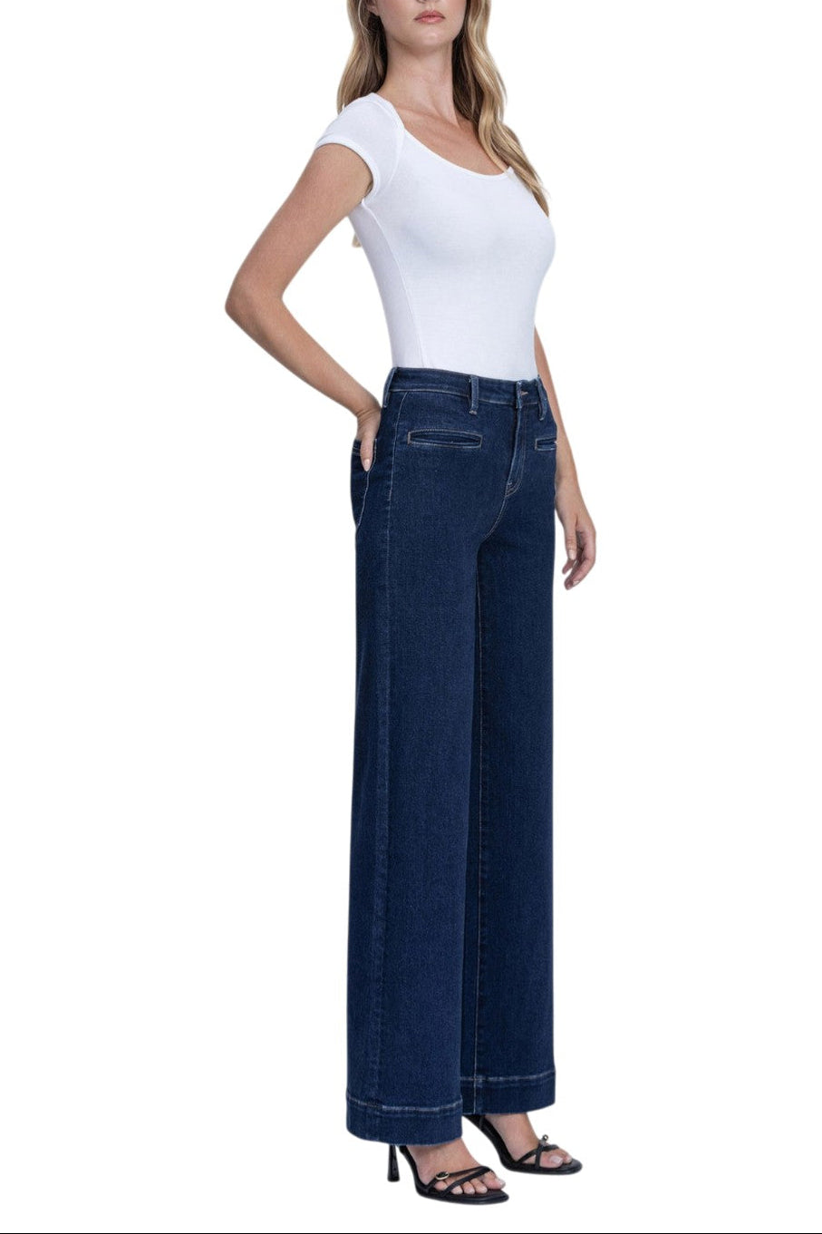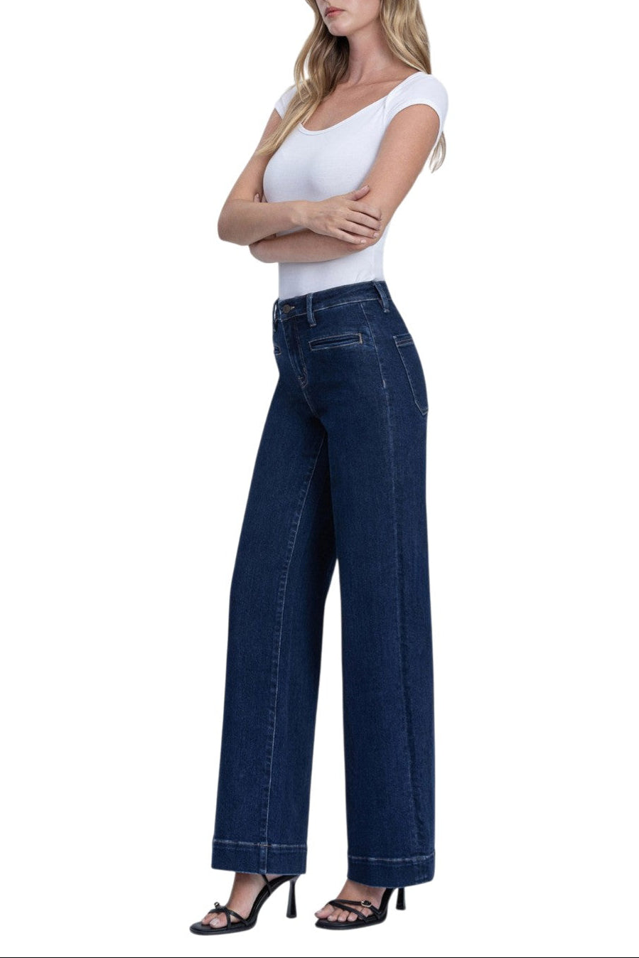 Vervet - High Rise Wide Leg Front Welt Pocket Trouser Jeans (32" Inseam) - T7206