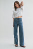 Description: Elevate your contemporary wardrobe with these High-Rise Wide-Leg Side Panel jeans from Mica Denim. Featured in a sophisticated dark indigo wash, these jeans incorporate an innovative Tummy Tuck design that provides targeted support and a slimming effect through the midsection for a smooth, confident profile. The design is elevated by structural side panel detailing and unique front pocket stitching, adding a modern, architectural twist to the classic wide-leg silhouette. This non-distressed style is completed with a single-button front closure and a secure zip fly for a polished, versatile finish.