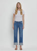 Description: Effortlessly blend vintage charm with modern edge in Vervet's High-Rise Cuffed Straight Jeans in the vibrant medium-blue wash "Daphne." These jeans are defined by a bold 4-inch single cuff hem with raw-edge detailing, adding a structured and trendy finish to the classic straight-leg silhouette. Subtle distressed detailing near the pockets and authentic whiskering at the hips provide a premium, lived-in aesthetic. Perfect for showcasing your favorite footwear, these cropped straight jeans are a versatile addition to any forward-thinking wardrobe.
