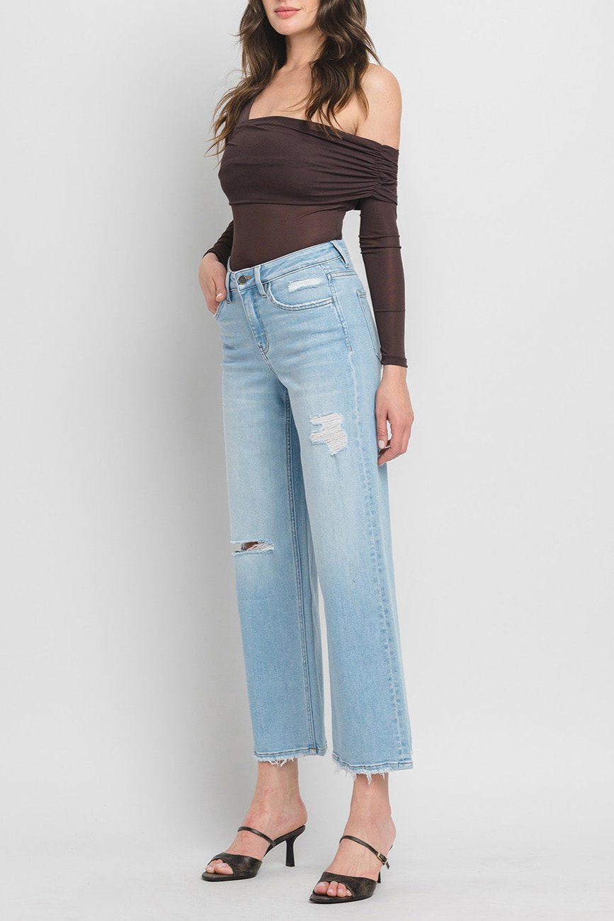 Flying Monkey - High Rise Wide Leg Jeans with Distressed Detail (28" Ankle Length) - F5712