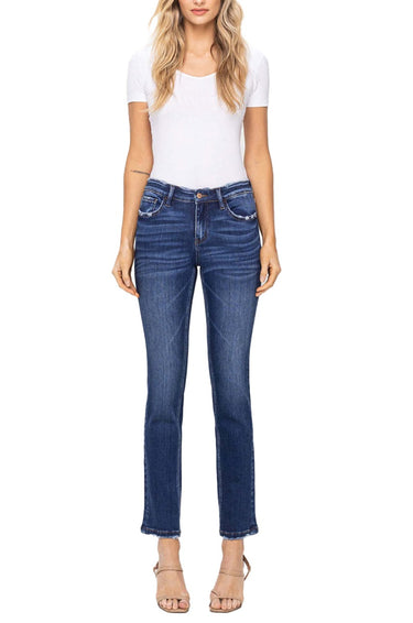 Flying Monkey - Mid Rise Ankle Slim Straight Jeans With Subtle Distressing (28" Inseam) - F4999