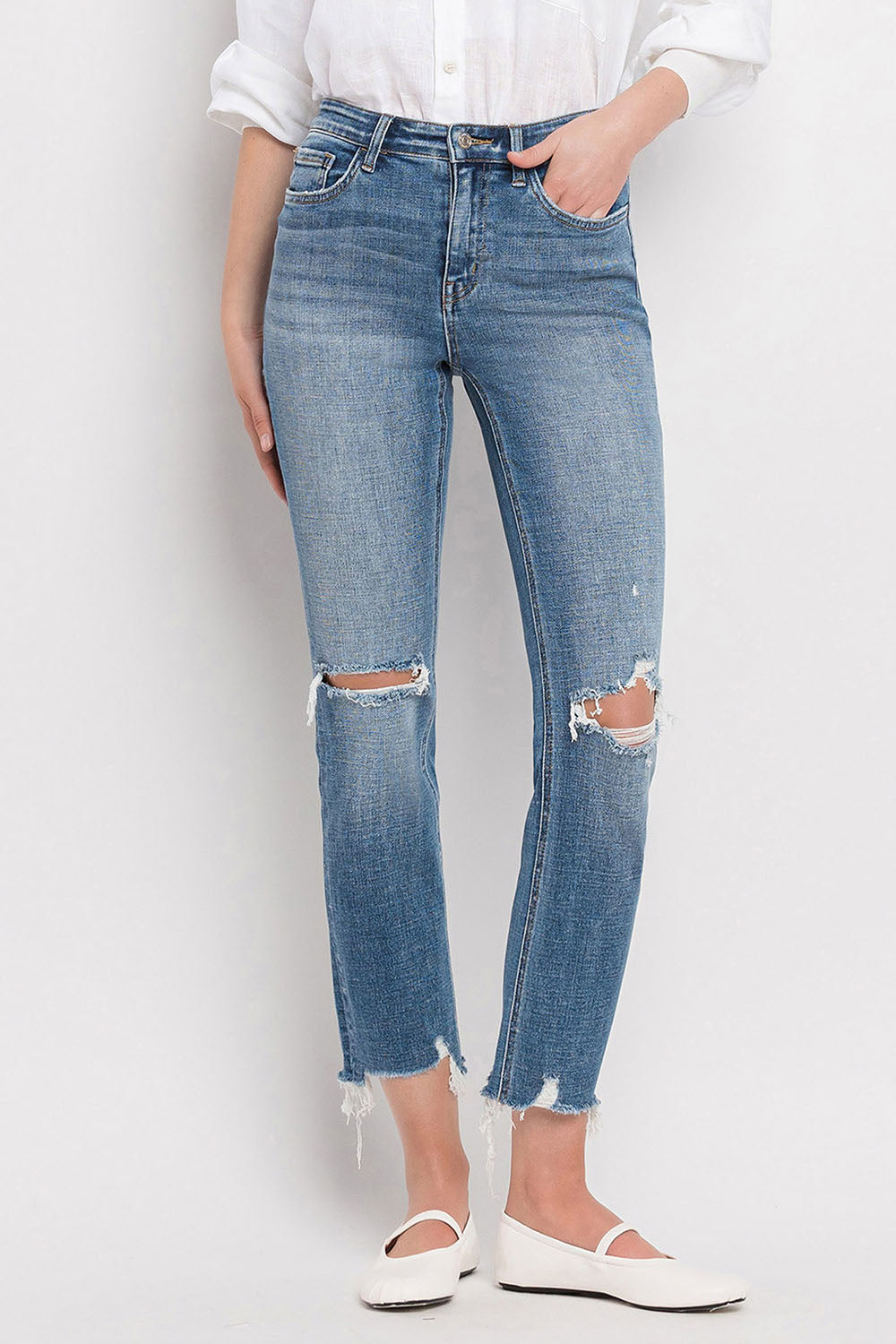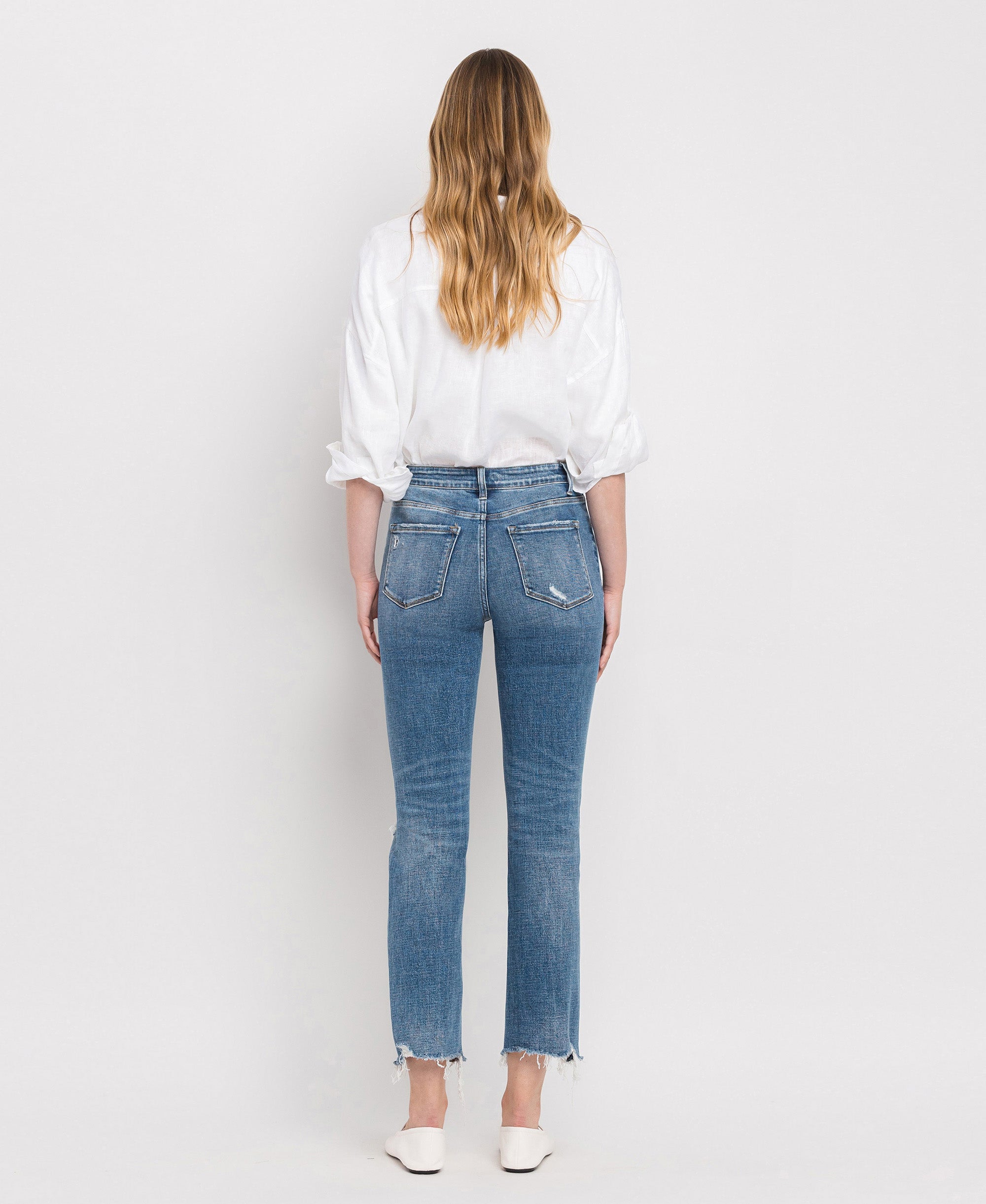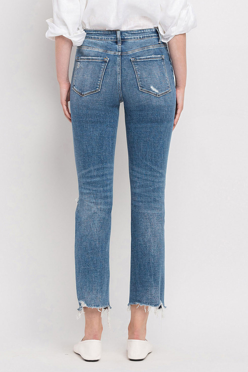 Flying Monkey - High Rise Slim Straight Jeans with Distressed Hem (27" Ankle Length) - F5022