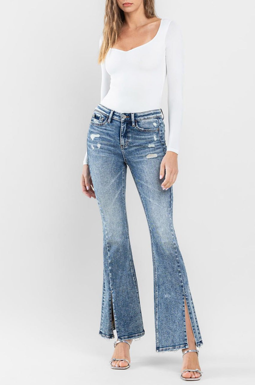 Flying Monkey - High Rise Split Hem Distressed Flare Jeans (34" Extra Long Inseam) - F5171 - Final Sale