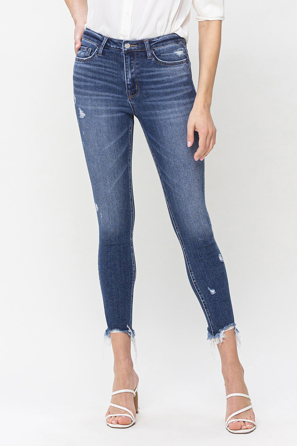 Flying Monkey - High Rise Distressed Skinny Jeans with Frayed Hem (27.25" Inseam) - F5238