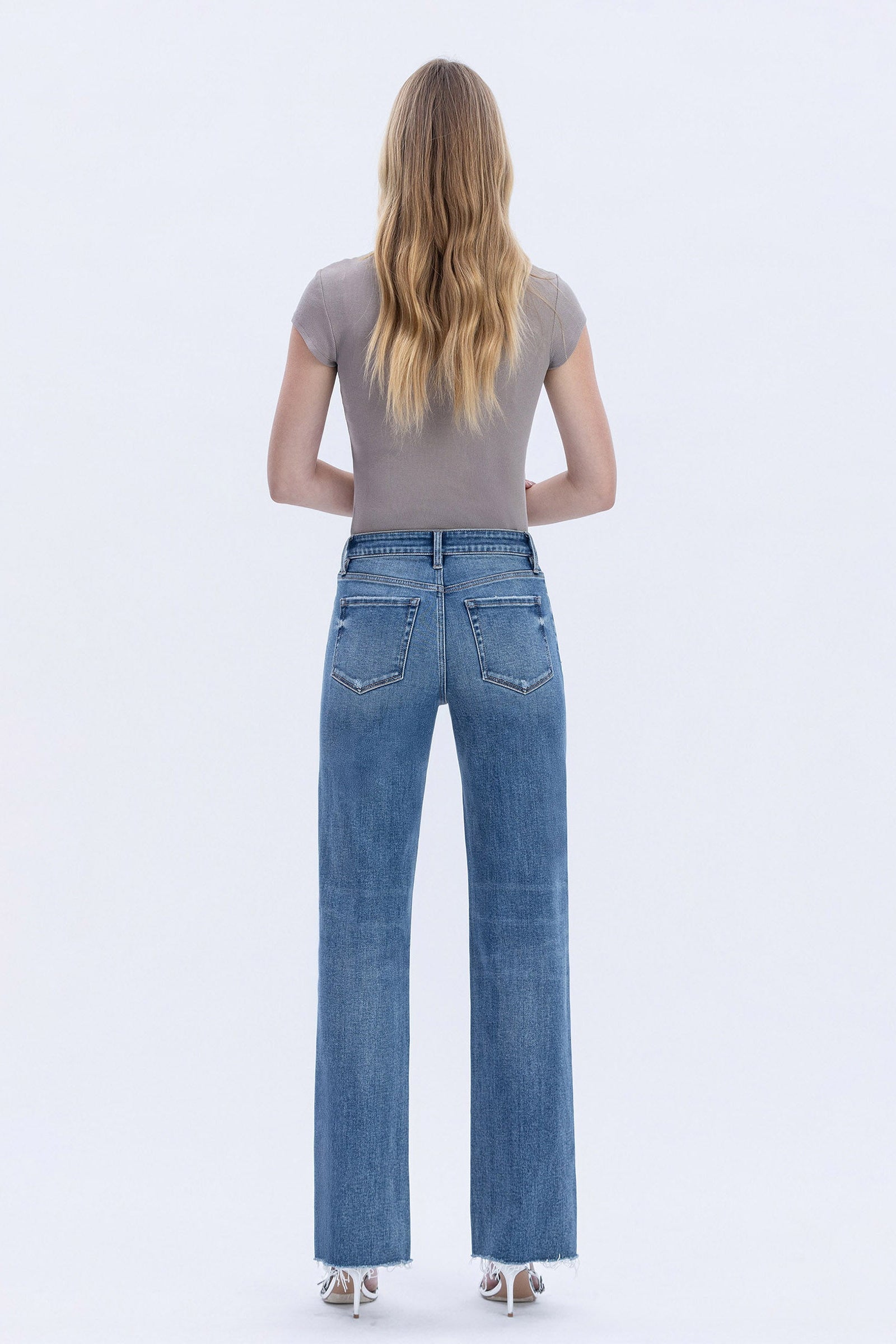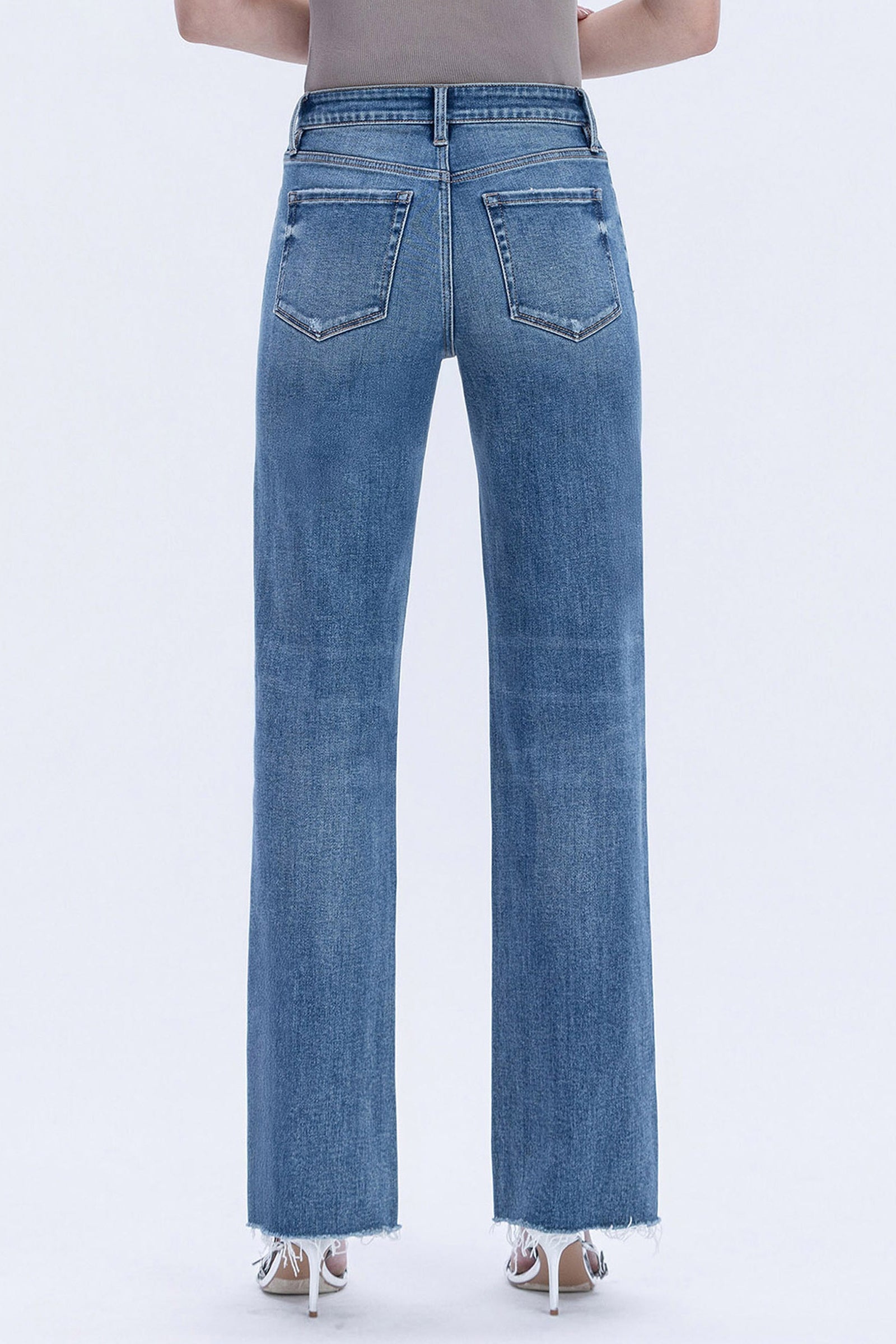 Flying Monkey - High Rise Frayed Hem Slim Wide Jeans (32" Inseam) - F6376