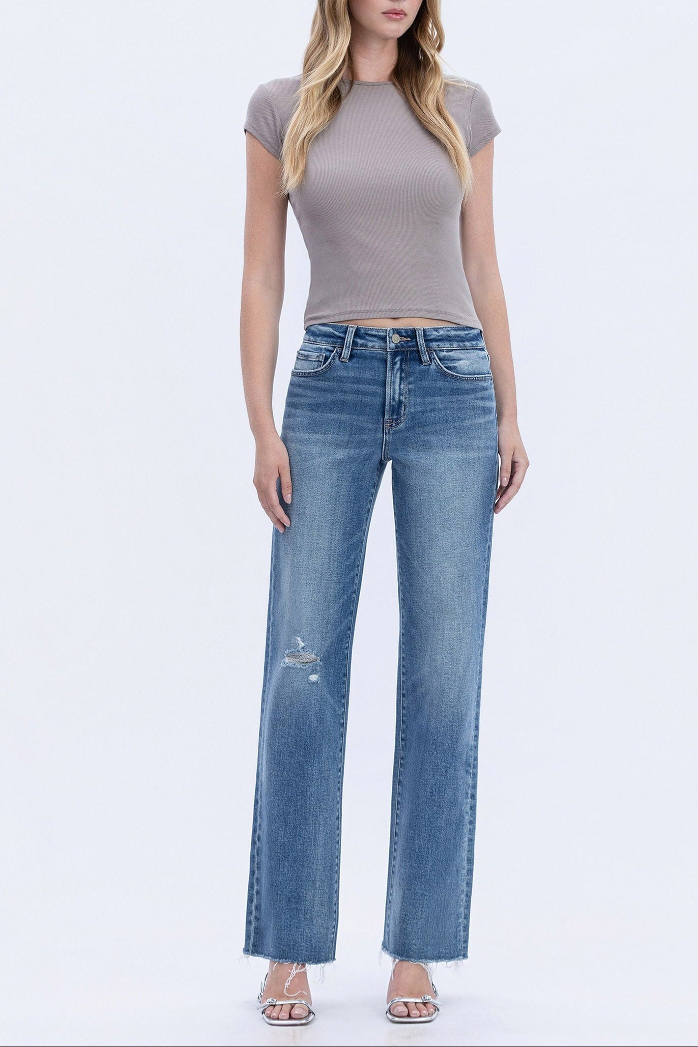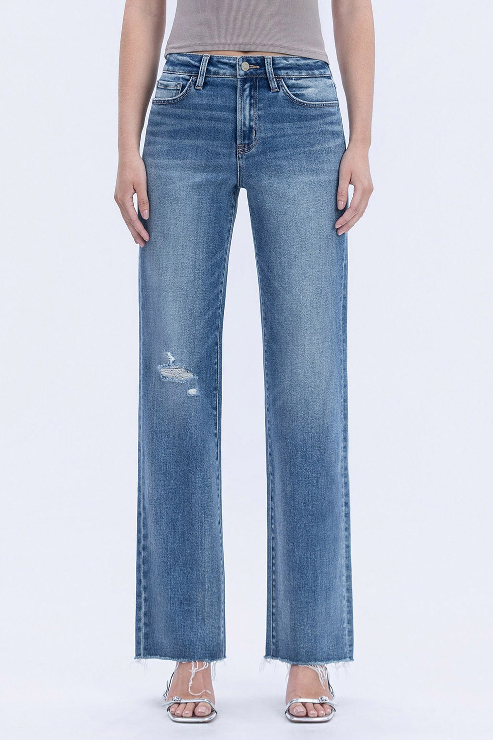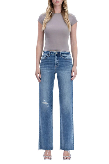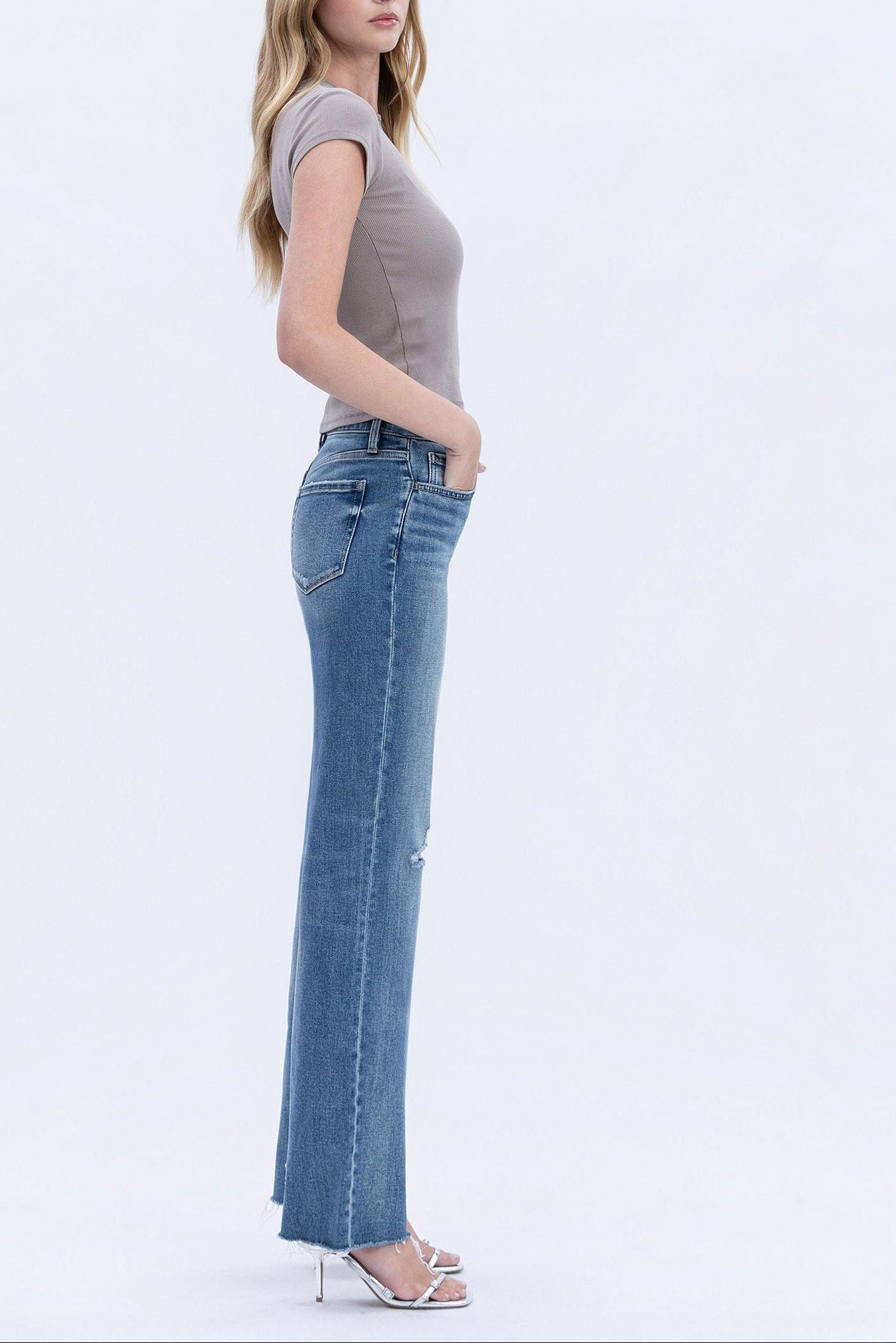 Description: Discover the perfect balance of effortless volume and a tailored silhouette with the Flying Monkey High Rise Frayed Hem Slim Wide Jeans in the beautiful Rosalie wash. This modern hybrid fit offers the breezy comfort of a wide-leg opening with a slimmer, more contoured profile through the hips and thighs. Featuring subtle distressed details and a trendy frayed hem, these jeans deliver a curated vintage vibe that elevates your everyday denim collection.
