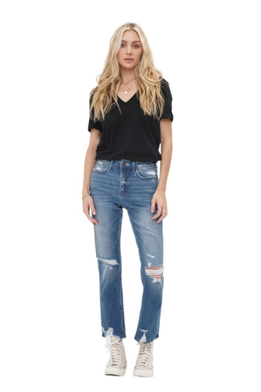 Mica Denim - High Rise Distressed Straight Jeans (28" Inseam) - MDP-T248