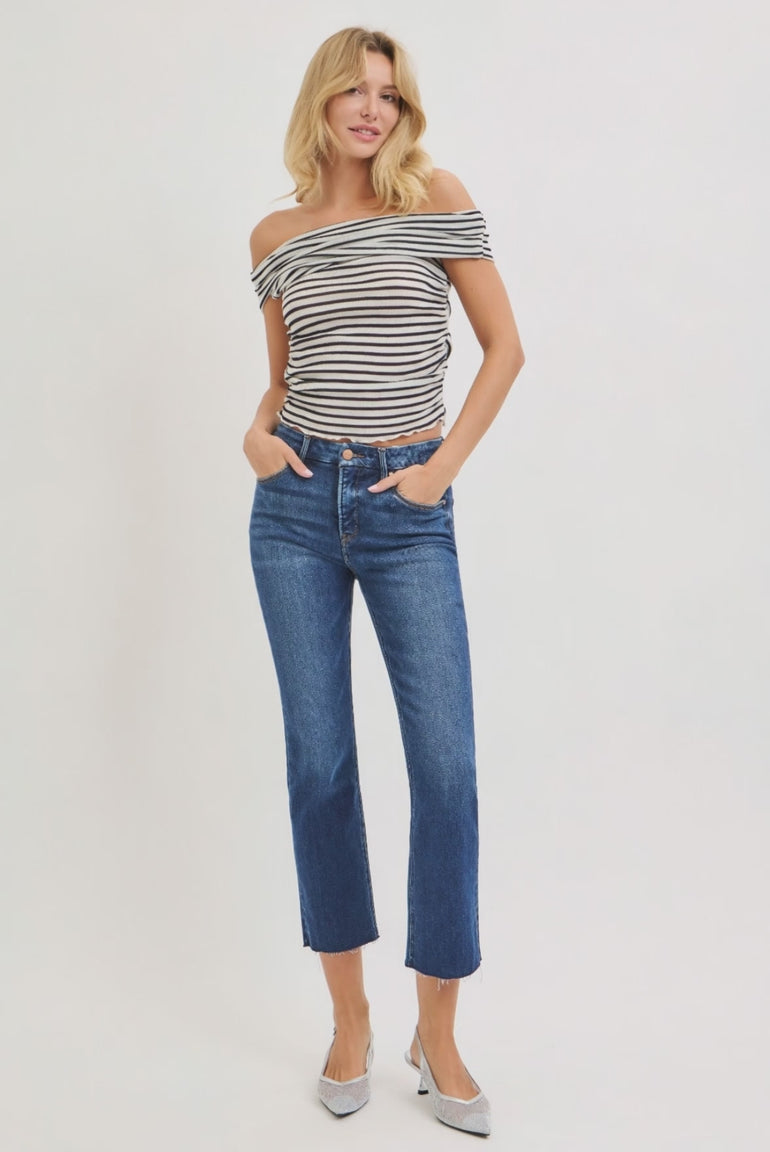Risen Jeans - High Rise Tummy Control Crop Straight Jeans (26.5" Inseam) - RDP5903 $72.95 /MediumBlueDarkBlueAvailable in 2 colors