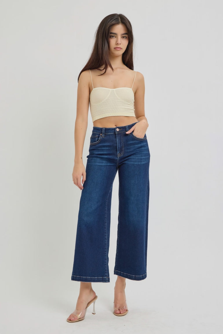 Risen Jeans - High Rise Cropped Barrel Leg Jeans in Vintage Dark Indigo (27.5" Inseam) - PGA21024 $74.95 /MediumBlueDarkBlueAvailable in 2 colors