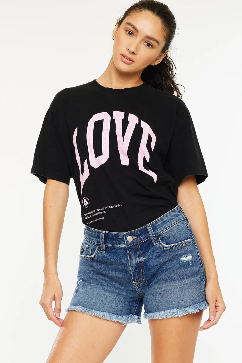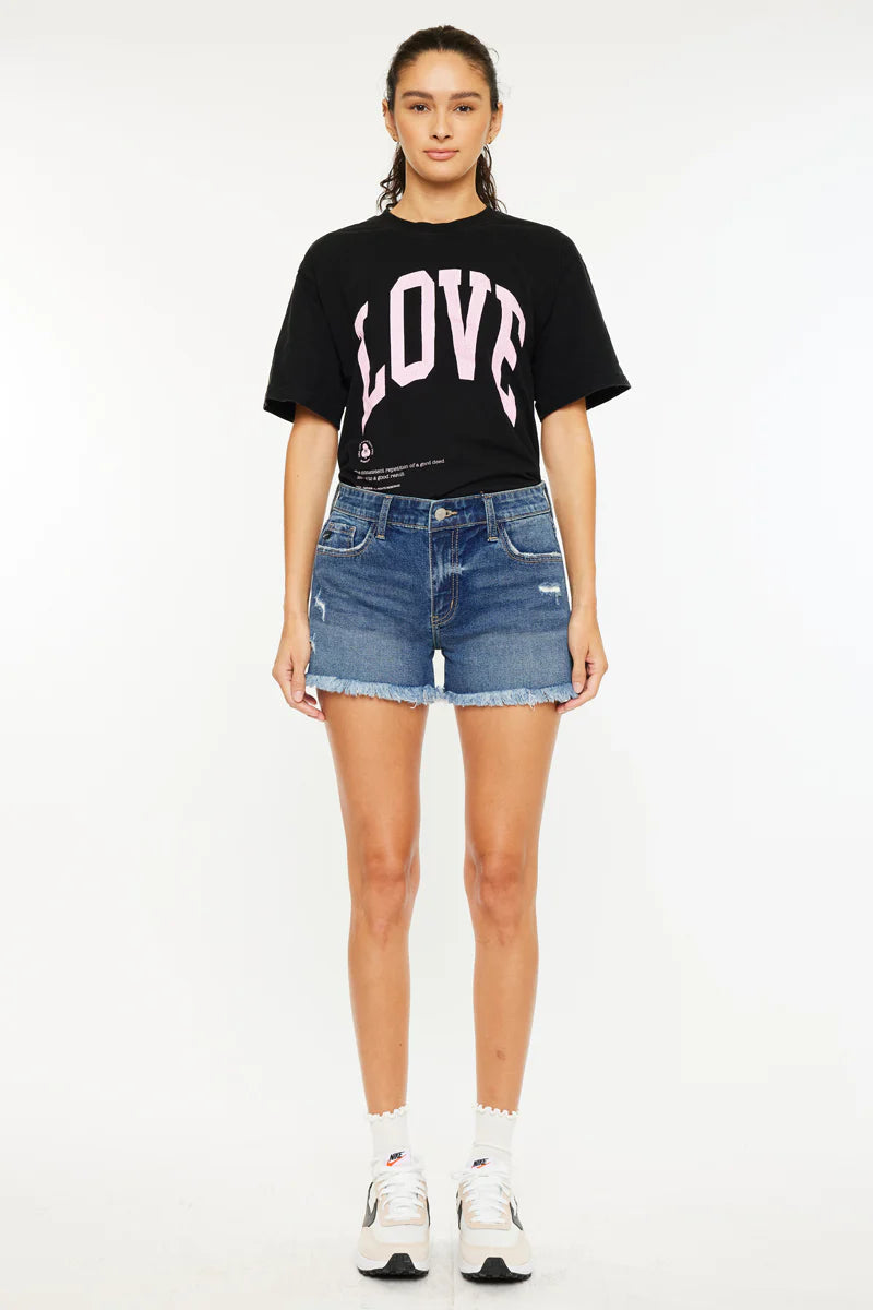 Description: Effortlessly cool and designed for everyday wear, the Darcie Essentials Mid Rise Shorts are your new warm-weather staple. These shorts feature a rich dark wash accented by a stylishly frayed hem, giving them a lived-in, authentic denim feel. Whether you're heading to a casual brunch or a beach day, these shorts offer a classic look that pairs perfectly with your favorite tees and tanks.